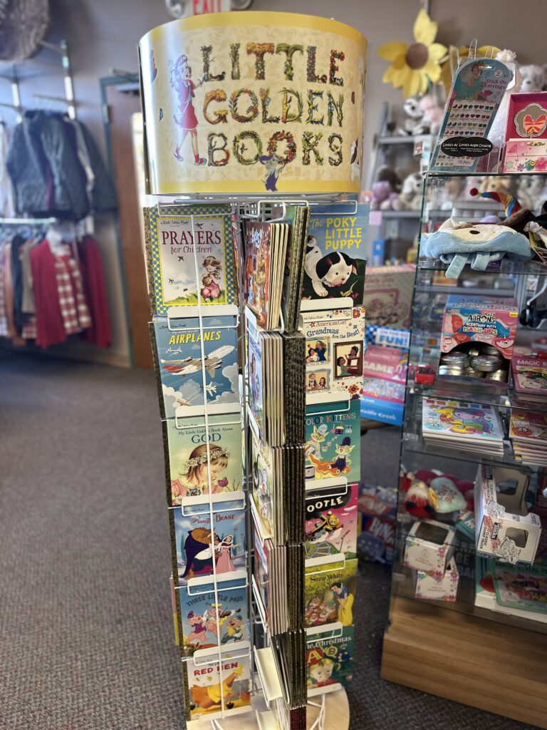 In our store you’ll find soft, plush toys, classic Golden Book stories, and Random House books. We also have perfect pop-up cards and we will gift wrap your items for you!