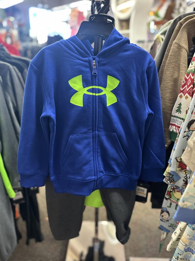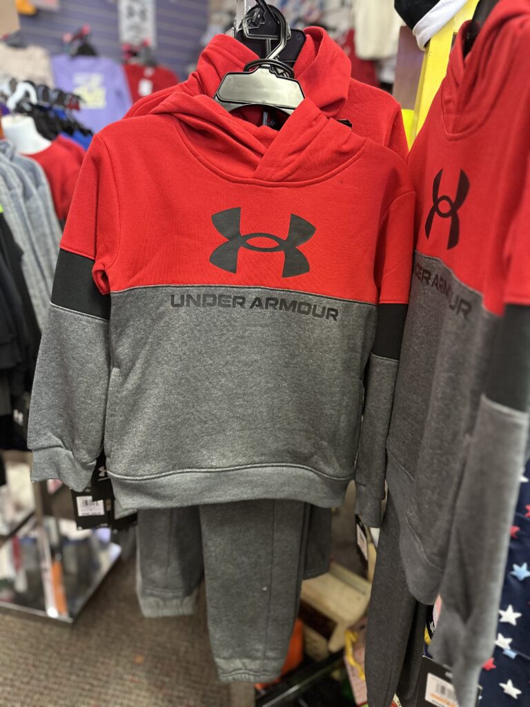 Linda’s Angel Crossing is the area’s only selection of toddler Under Armour clothing. For both boys and girls, you’ll find sizes from toddler to children’s size 14 in a variety of poplar clothing brands.