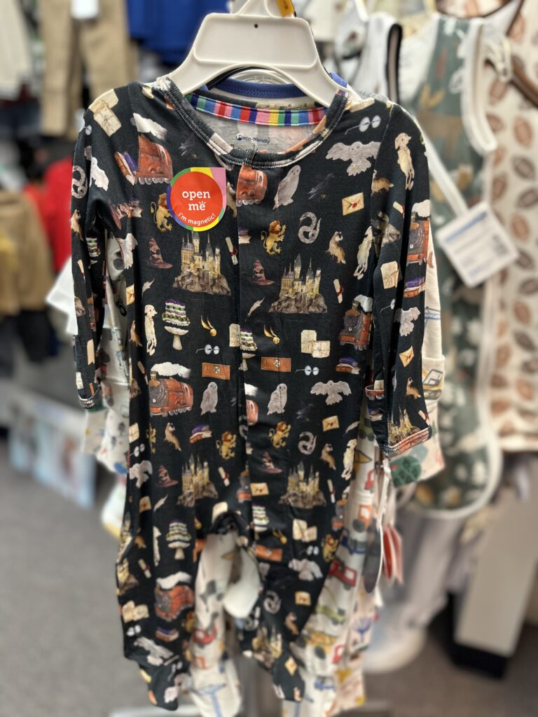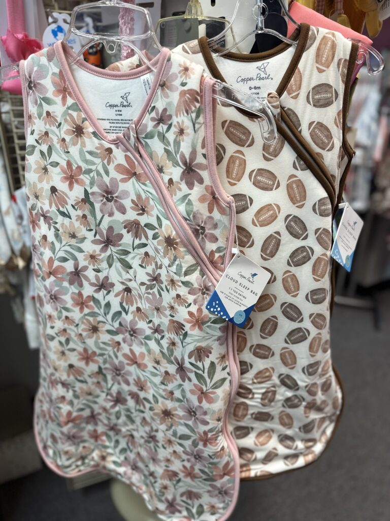 We carry newborn sizes to toddler. You’ll find magnetic sleepers, daily and dress outfits, and footwear too. Our selection also includes blankets and cozy swaddles.