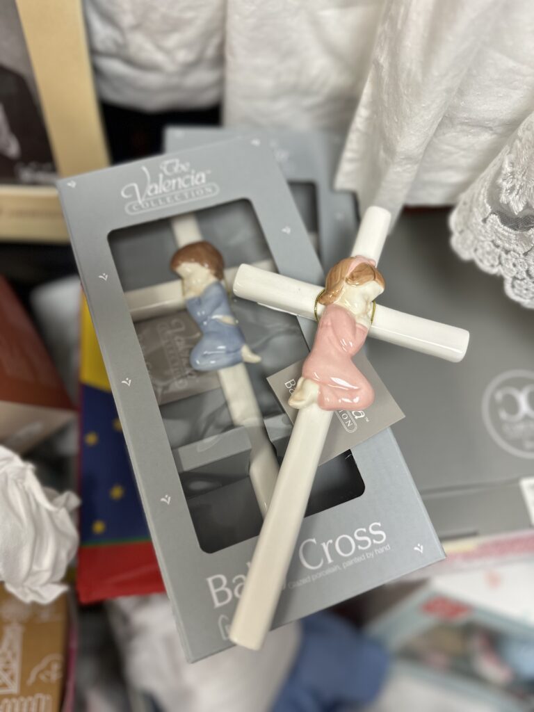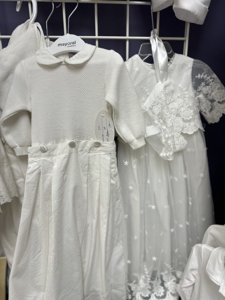 We also carry much more and a variety of other items too, like baptism outfits and items, pajamas, Golden Books, Random House books, pop-up cards, jewelry, and accessories too!